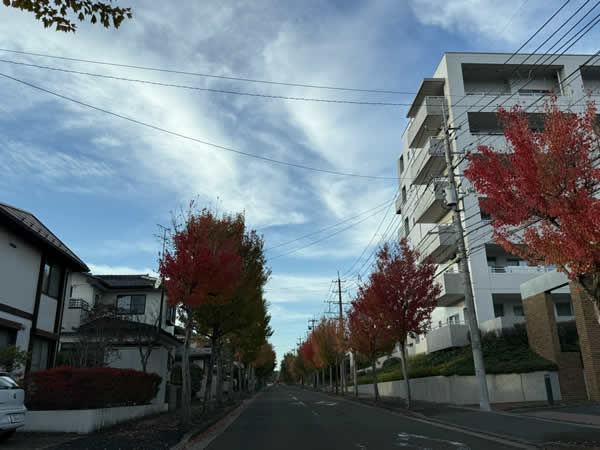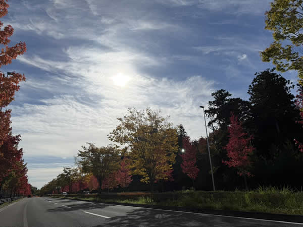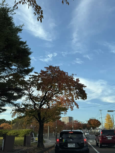 ふと顔を上げた瞬間、目に飛び込んできたのは、鮮やかに色づいた街路樹たちでした。